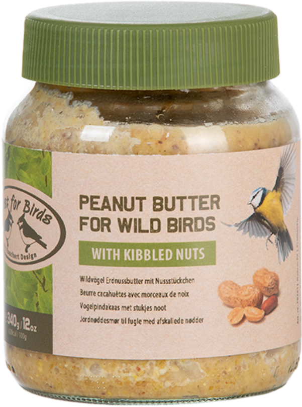 In diesem Glas sind ganz besonders köstliche Zutaten enthalten, um Meisen, Rotkehlchen und Co. gut durch den Winter zu bringen. Der nahrhafte Snack versorgt unsere geflügelten Freunde mit hochwertigen Fetten und köstlichen Nussstücken, sodass diese ihren erhöhten Kalorienbedarf gezielt decken können. Die schmackhafte Erdnussbutter kann natürlich das ganze Jahr über zur Verfügung gestellt werden, denn auch während der Partnersuche, Brut und Mauser sind Wildvögel dankbar für etwas Unterstützung.