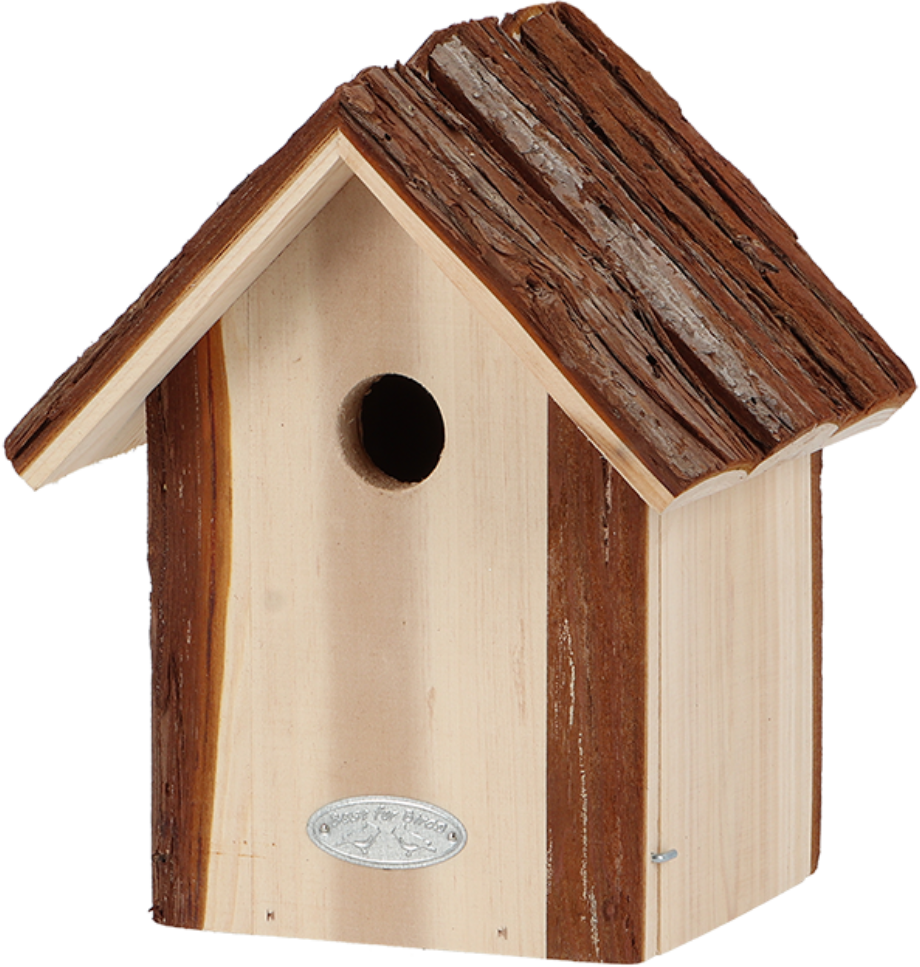 Dieser hübsche Nistkasten ist der ideale Ort für Blaumeisen und bietet diesen zuverlässigen Schutz vor Sturm sowie Räubern. Darüber hinaus ist er auch der perfekte Ort, um den gefiederten Nachwuchs sicher aufzuziehen. Das besondere Highlight ist das Rindendach, das dem Nistkasten einen natürlichen Look verleiht.