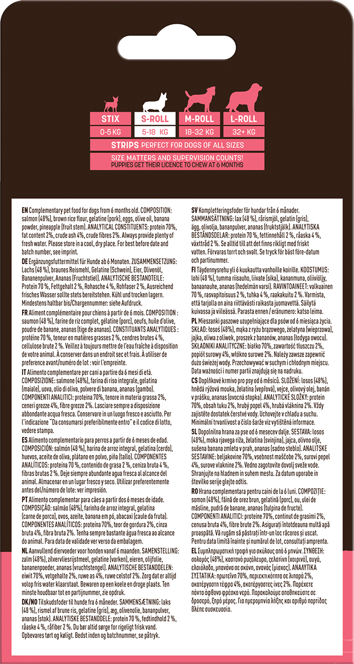 Der No-Hide™ Kausnack Lachs ist eine innovative und sichere Alternative zu traditionellen Kausnacks aus Rohhaut. Dieses Produkt wurde speziell entwickelt, um deinem Hund ein langanhaltendes und schmackhaftes Kauvergnügen zu bieten, ohne das mit herkömmlicher Rohhaut verbundene Risiko des Splitterns.